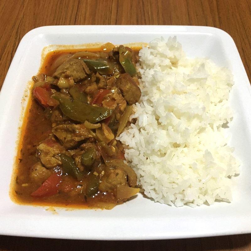 Gewuerfeltes Schweinefleisch mit Zwiebeln, Paprika, Speck und Geweurzen langsam ueber 2 Stunden gegart. Schmeckt wie Schaschlik vom Imbiss nur ohne Holzspiess. Als Beilage passt Reis, Nudeln oder auch Pommes. Die Schaschlik Sosse ist das Besondere an diesem Gericht.